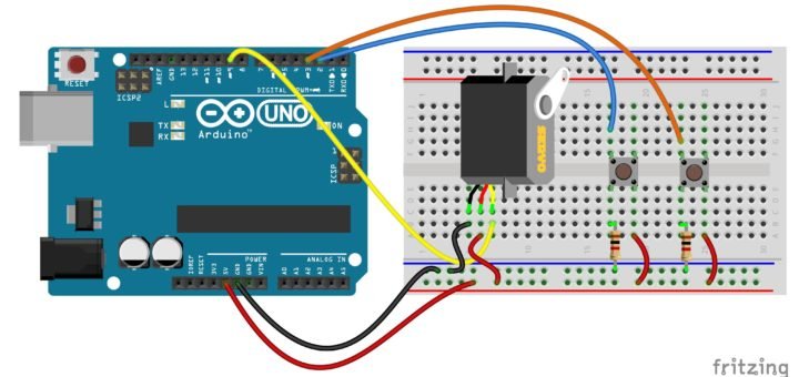In any type of servo position control methods like using a potentiometer, press switch, etc, the Arduino is actually writing each position values in degrees corresponding to the input change. In all that methods...